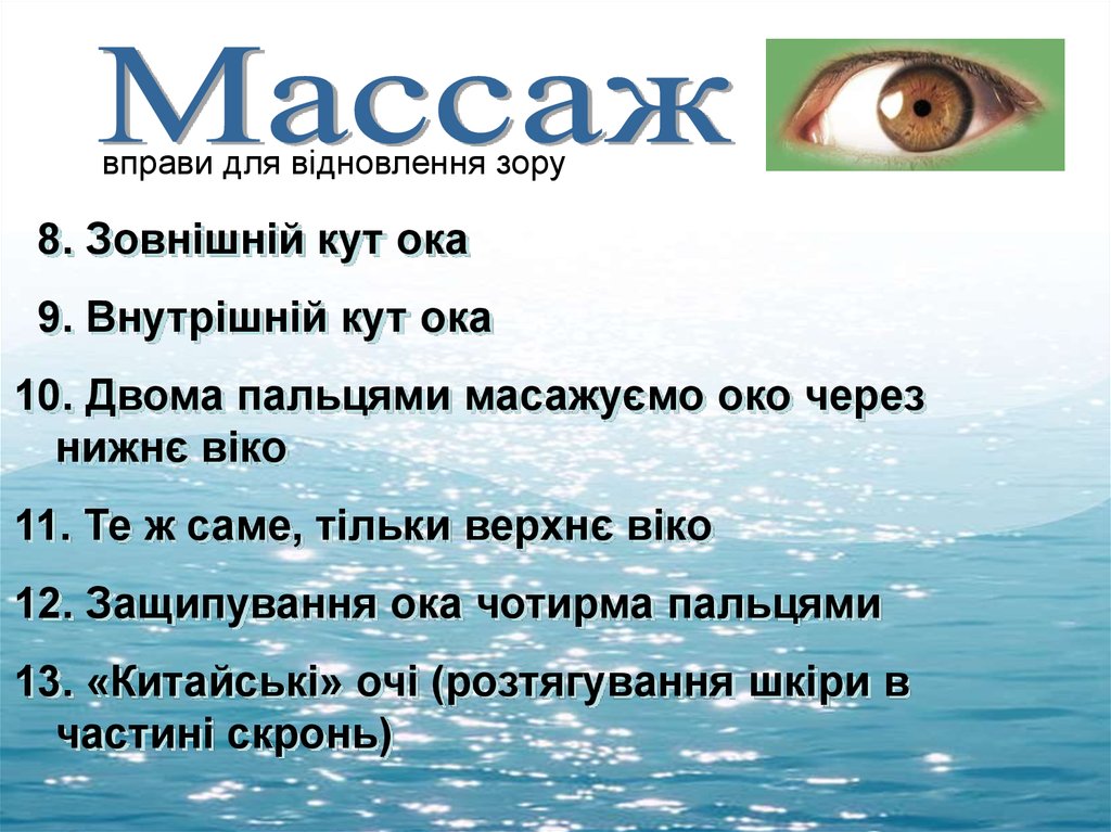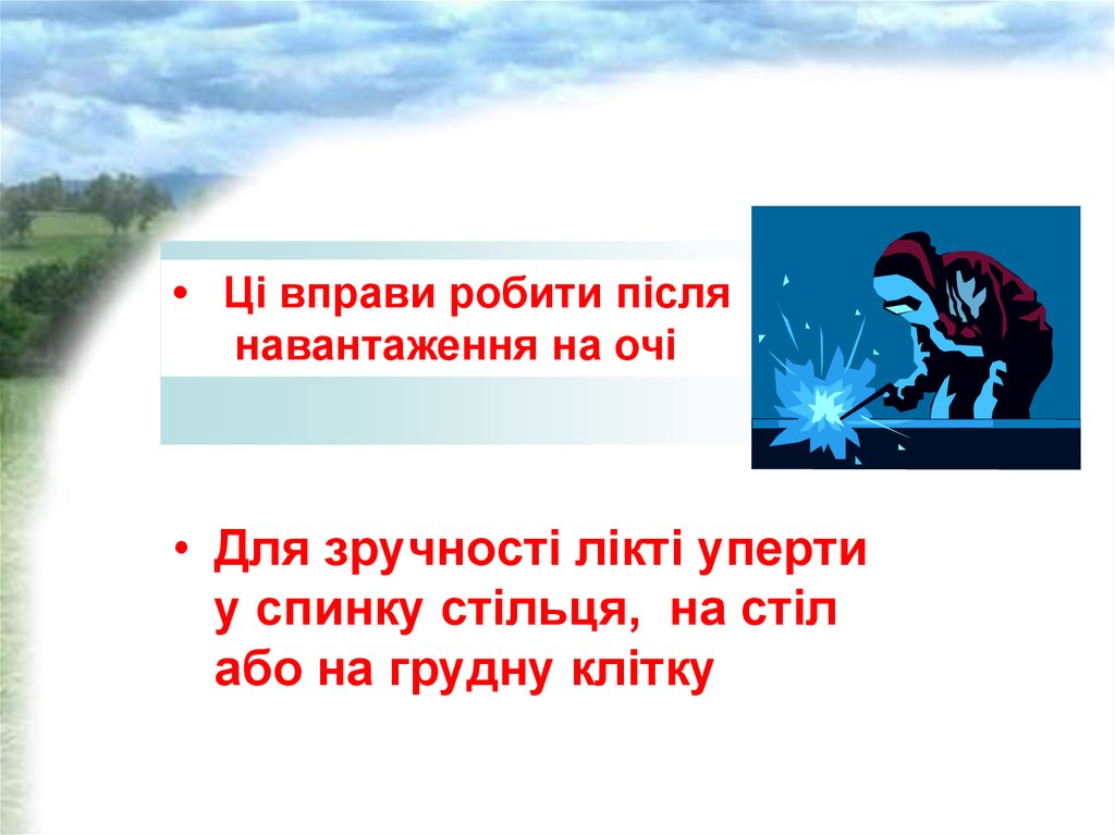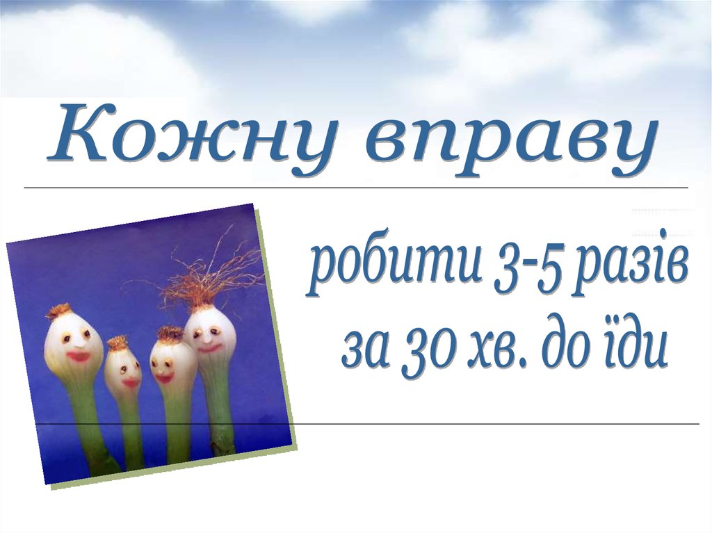 вправи з відновлення зору1. Трьома пальцями масажуємо чоло над