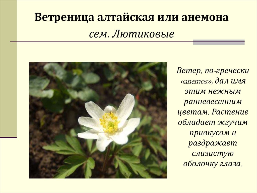 Ветреница алтайская или анемонасем. Лютиковые