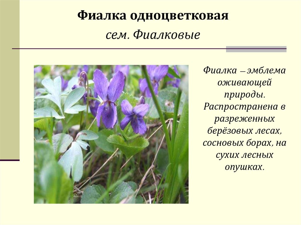 Фиалка одноцветковаясем. Фиалковые