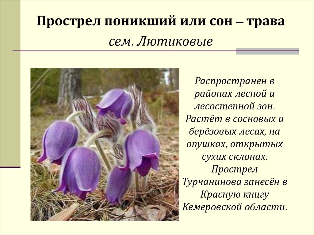 Прострел поникший или сон – травасем. Лютиковые
