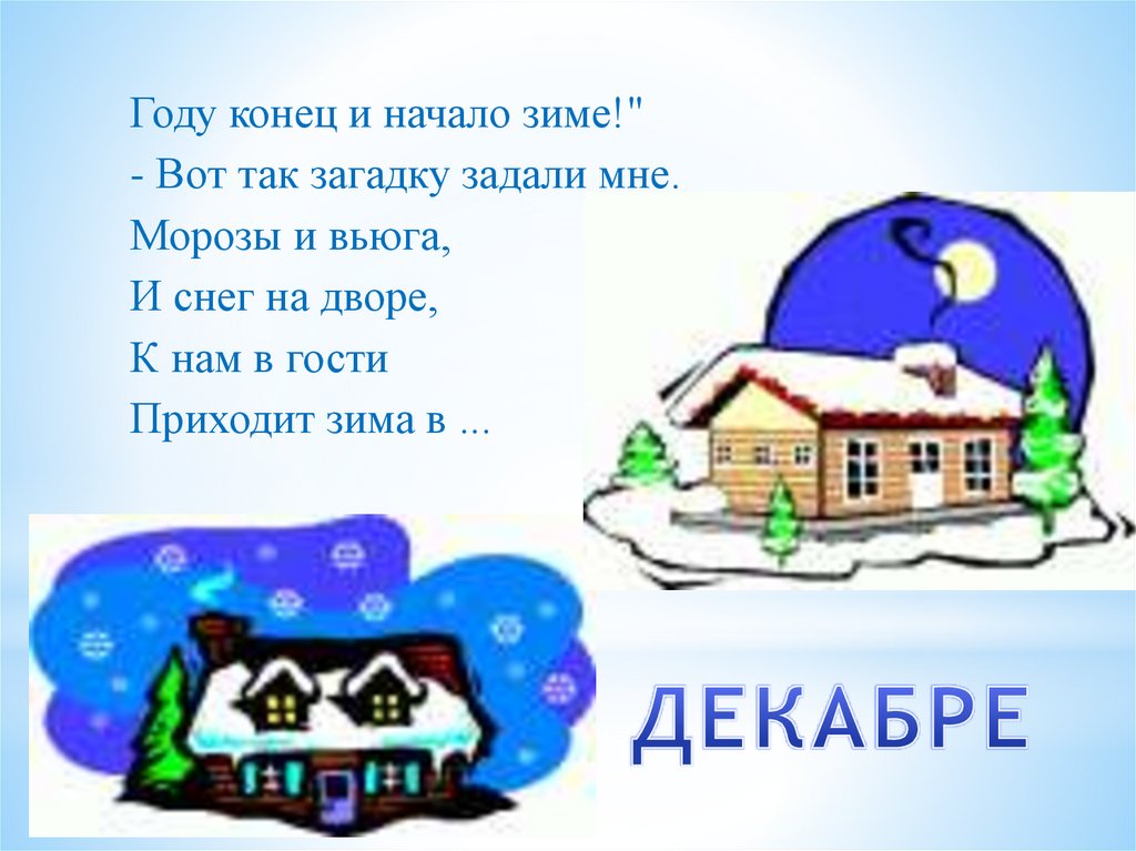 Году конец и начало зиме!"- Вот так загадку задали мне.