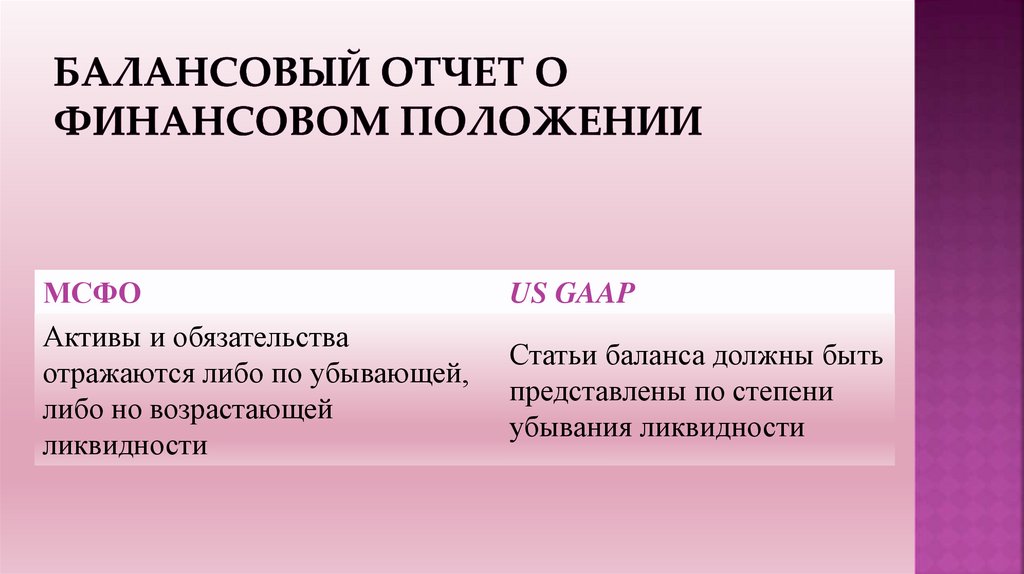 МСФО и US GAAP во многом схожи в части представленияфинансовой отчетности. Например, эти системы требуют, чтобы