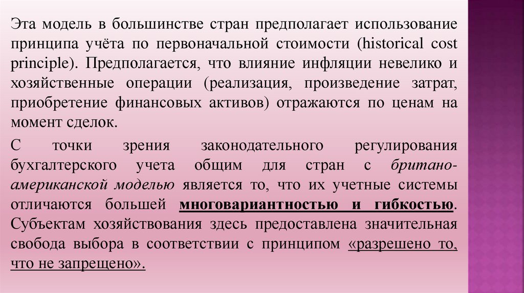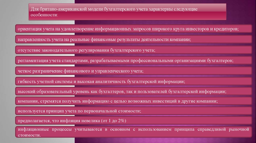 Для британо-американской модели бухгалтерского учета характерны следующиеособенности: