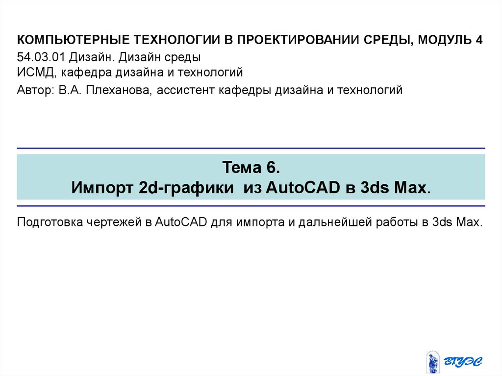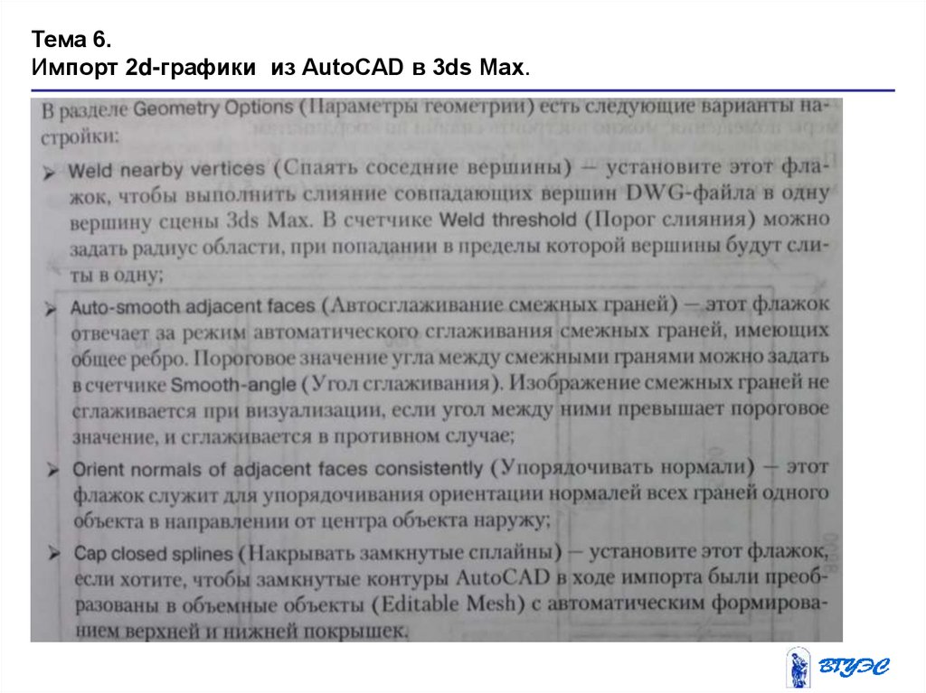 Тема 6.Импорт 2d-графики из AutoCAD в 3ds Max.