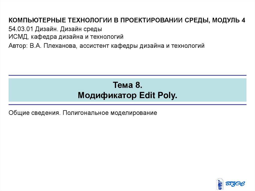 КОМПЬЮТЕРНЫЕ ТЕХНОЛОГИИ В ПРОЕКТИРОВАНИИ СРЕДЫ, МОДУЛЬ 454.03.01 Дизайн. Дизайн среды
