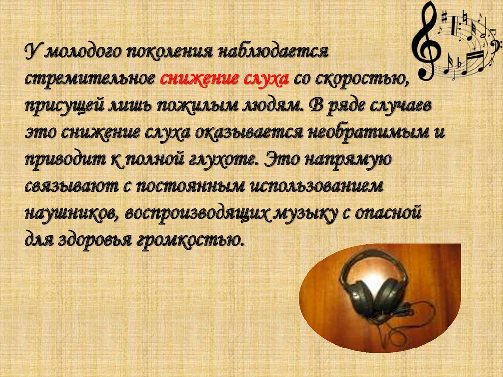 У молодого поколения наблюдаетсястремительное снижение слуха со скоростью,