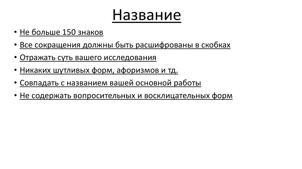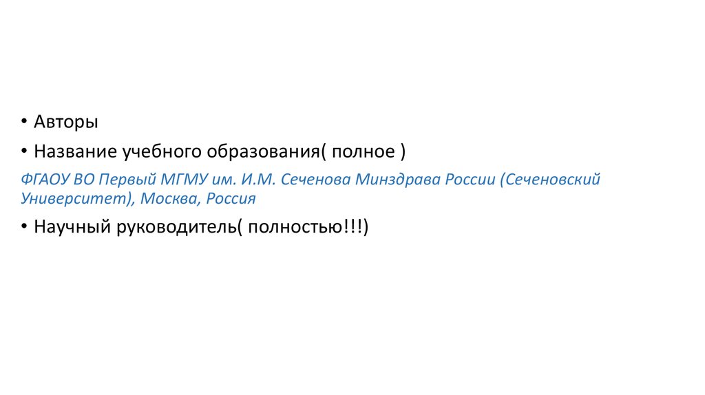 • Полужирное выделение ЗАГОЛОВОК, АВТОРЫ, ДЕЛЕНИЕ РАБОТЫ