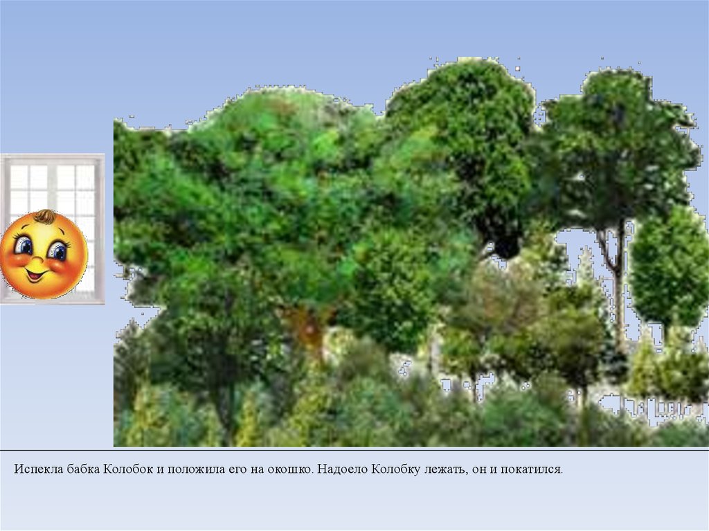 Испекла бабка Колобок и положила его на окошко. Надоело Колобку лежать, он и покатился.3.