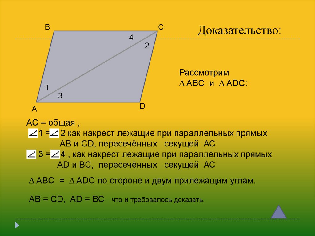 ∆ ABC = ∆ ADC по стороне и двум прилежащим углам