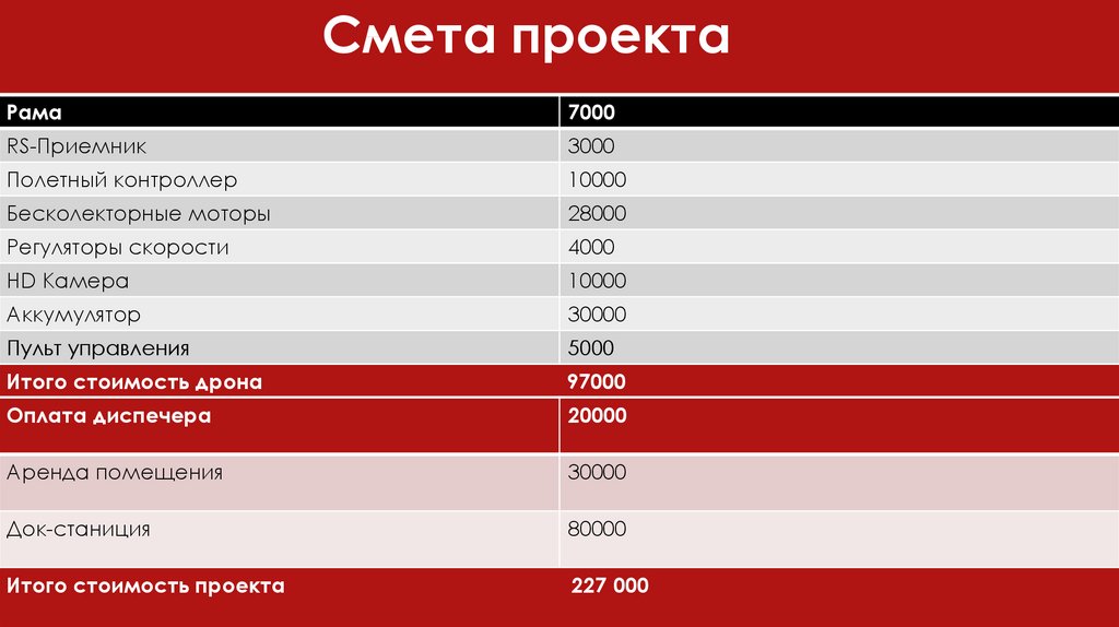 Итого стоимость дрона