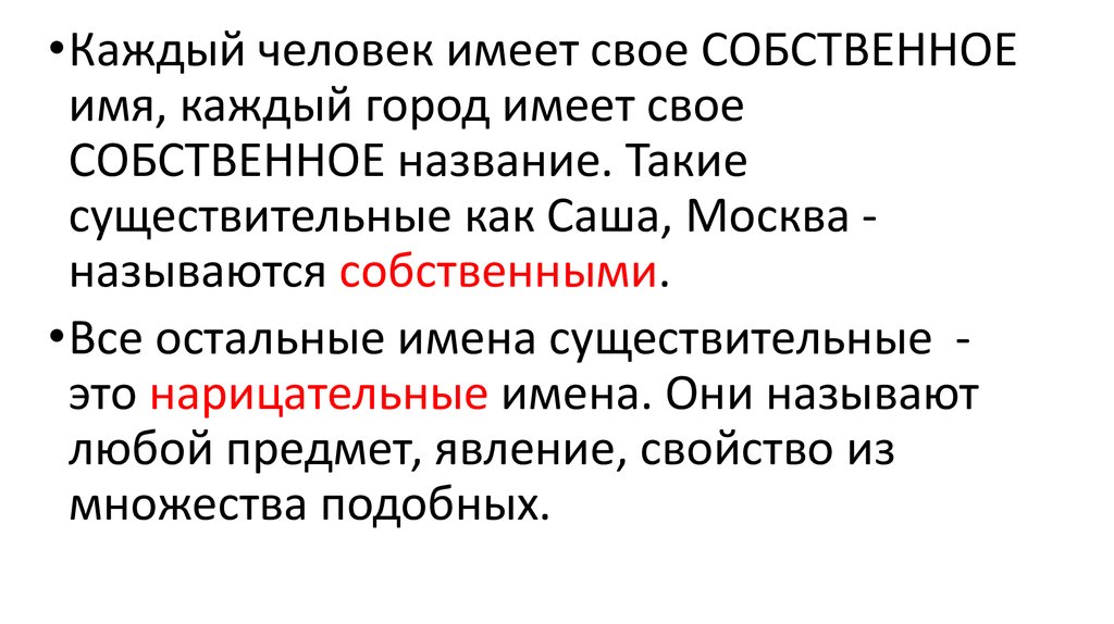 •Каждый человек имеет свое СОБСТВЕННОЕимя, каждый город имеет свое
