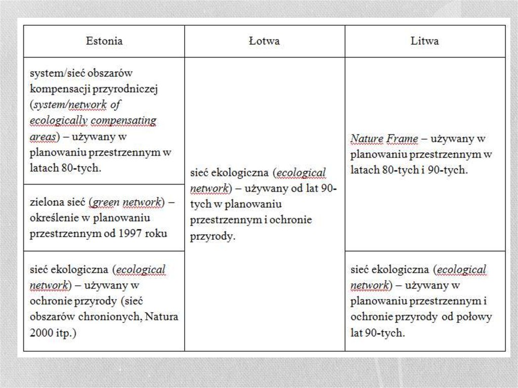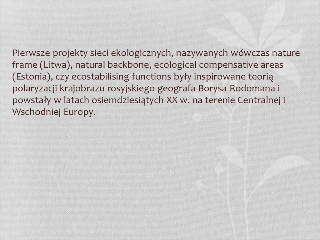 Pierwsze projekty sieci ekologicznych, nazywanych wówczas natureframe (Litwa), natural backbone, ecological compensative areas