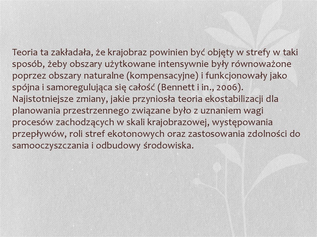 Teoria ta zakładała, że krajobraz powinien być objęty w strefy w takisposób, żeby obszary użytkowane intensywnie były równoważone