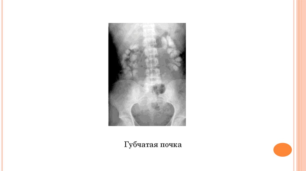 ГУБЧАТАЯ ПОЧКА.Встречается еще один вид довольно редкой аномалии — губчатые почки,