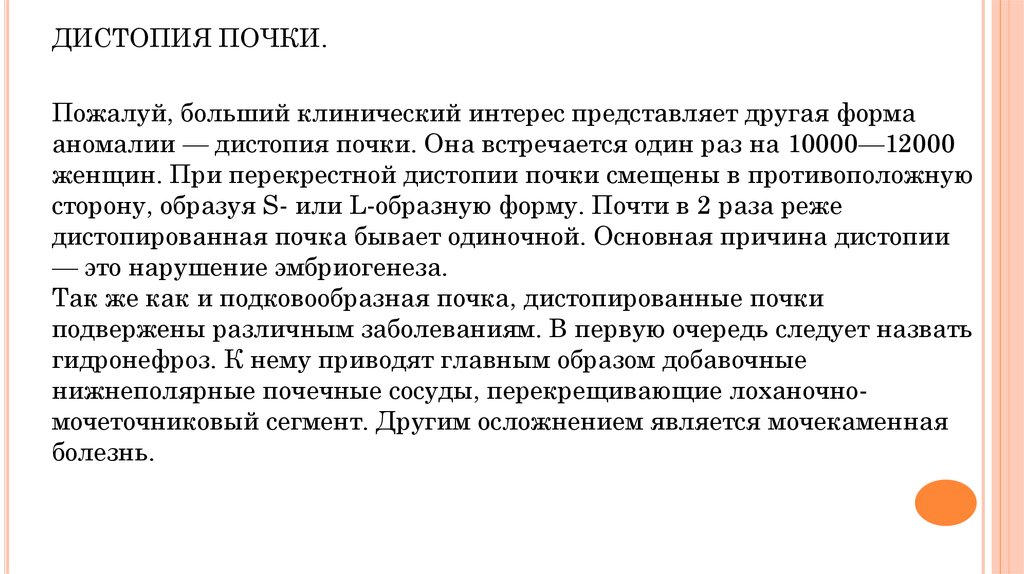 ДИСТОПИЯ ПОЧКИ.Пожалуй, больший клинический интерес представляет другая форма