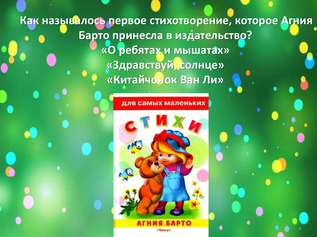 В каком году вышла первая книга Барто?8.