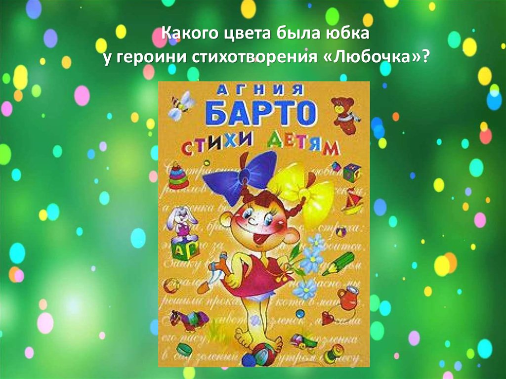 Какого цвета была юбкау героини стихотворения «Любочка»?