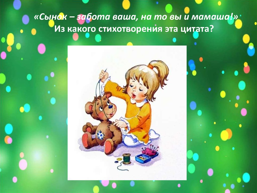 «Сынок – забота ваша, на то вы и мамаша!»Из какого стихотворения эта цитата?