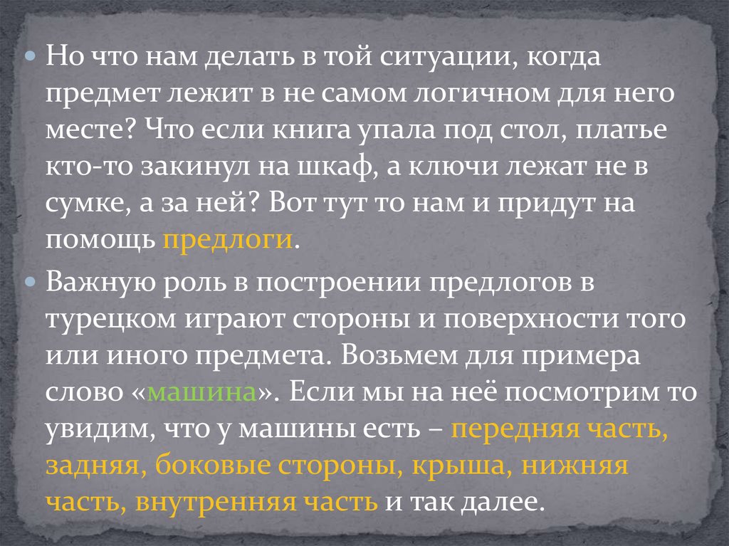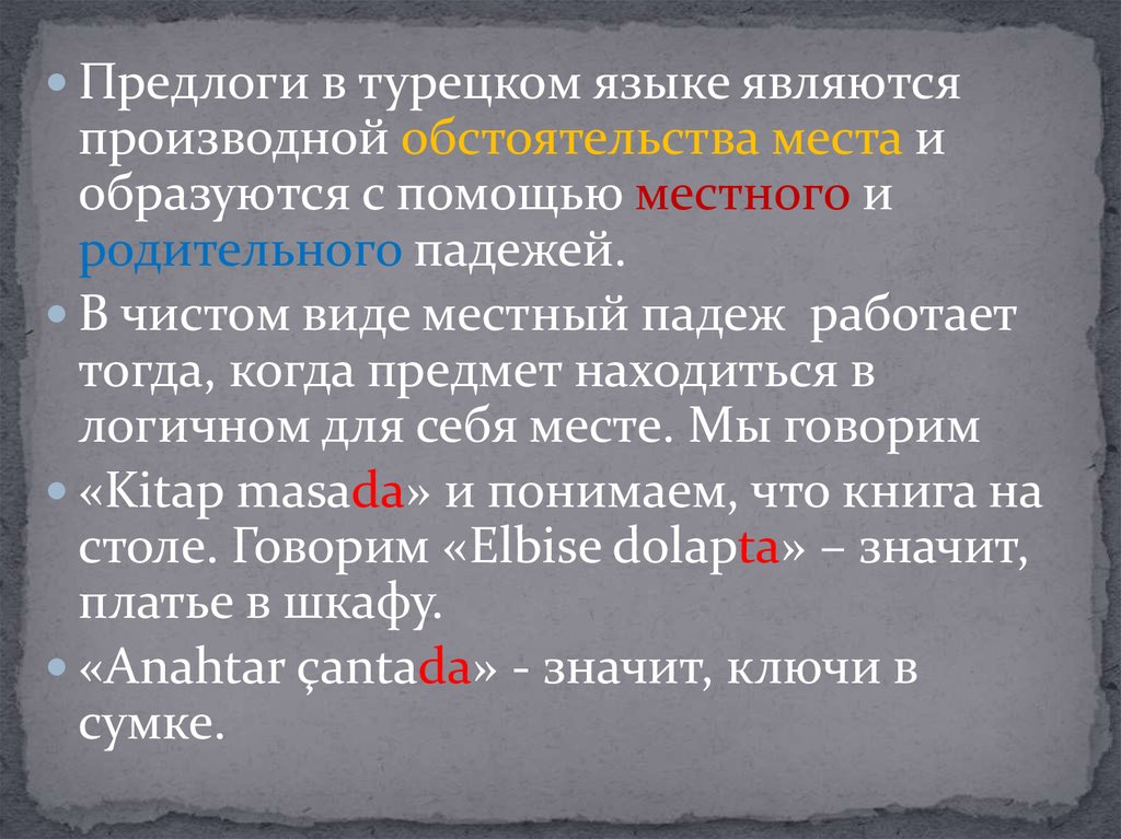 Предлоги в турецком языке являютсяпроизводной обстоятельства места и