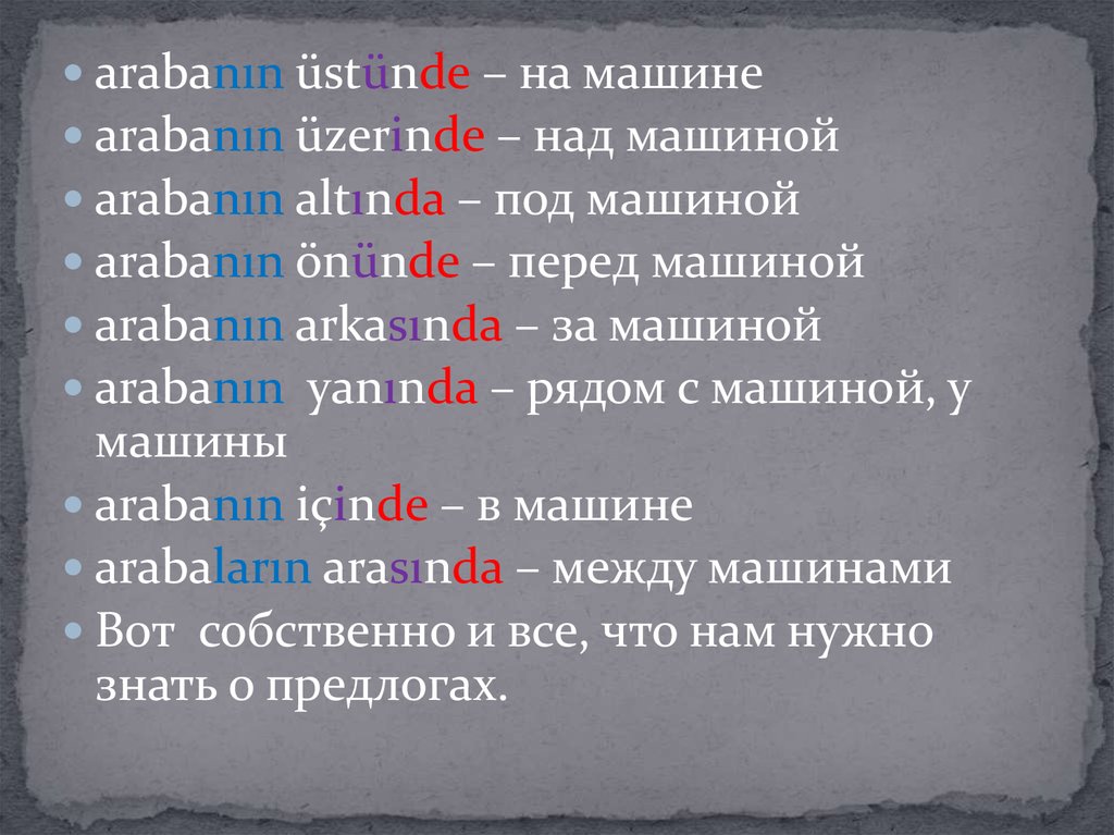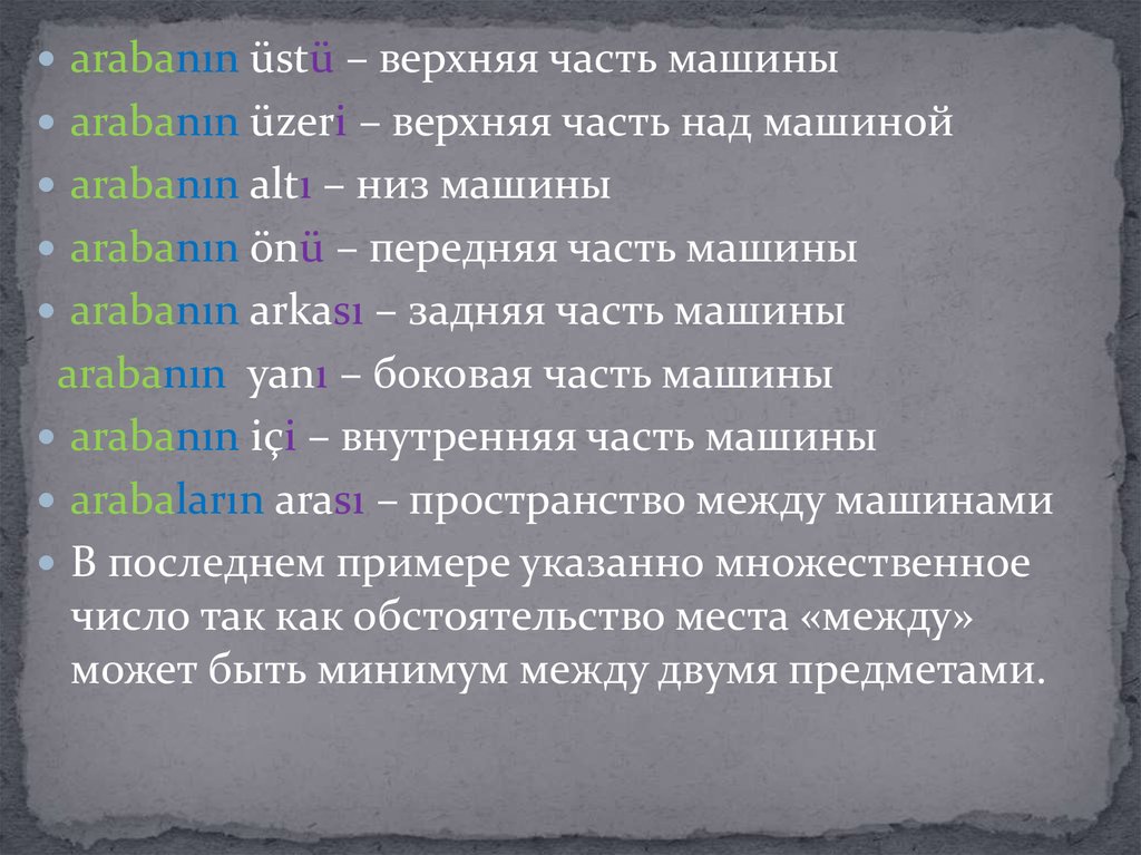 arabanın üstünde – на машинеarabanın üzerinde – над машиной