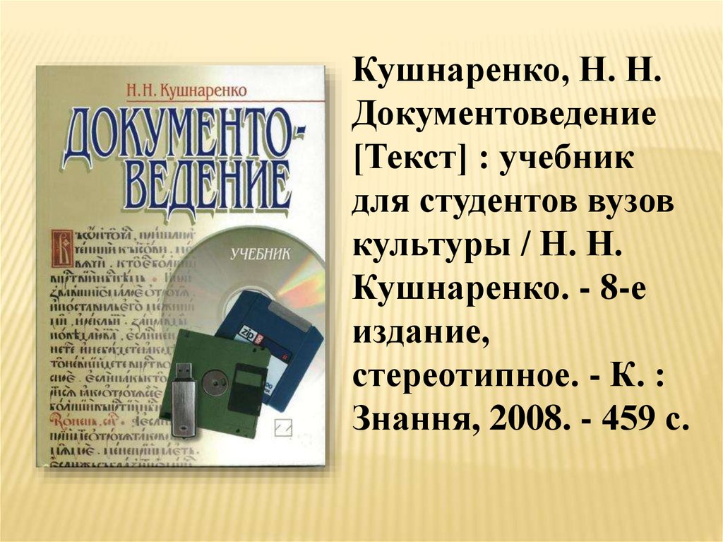 Кушнаренко, Н. Н.Документоведение