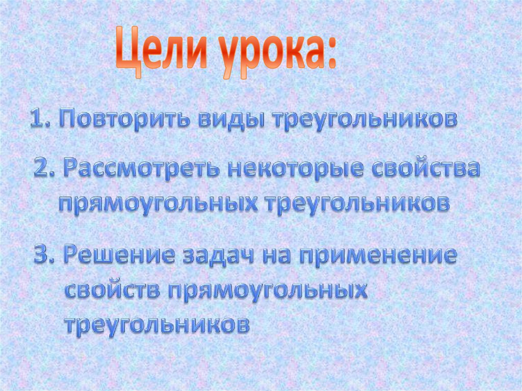 1. Что нового узнали на уроке?2. Сформулируйте три свойства прямоугольных