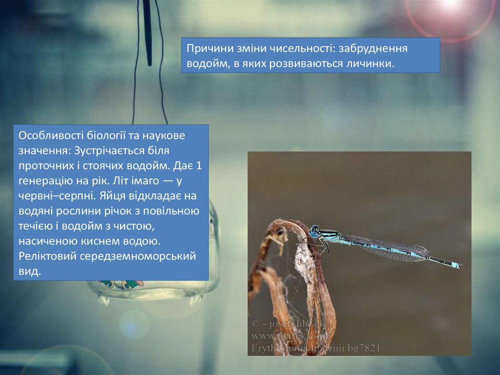 Причини зміни чисельності: забрудненняводойм, в яких розвиваються личинки.