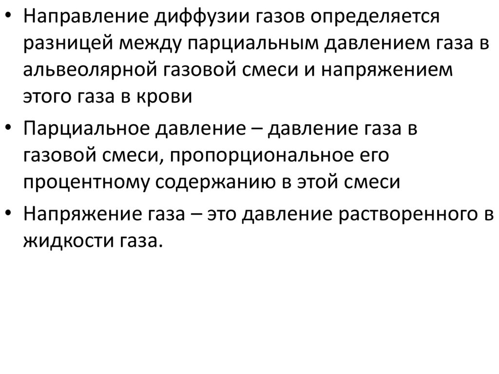 • Направление диффузии газов определяетсяразницей между парциальным давлением газа в