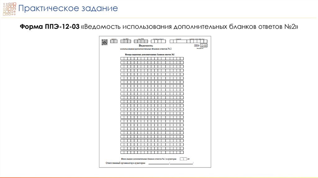форма ППЭ-12-03 «Ведомость использования дополнительных бланков ответов № 2»;