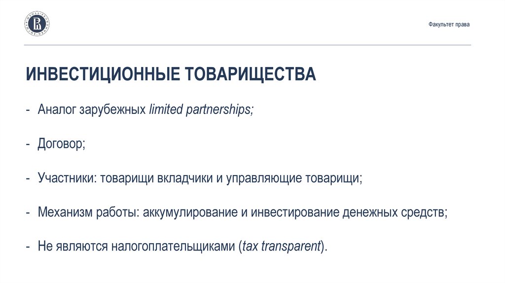 Факультет праваИНВЕСТИЦИОННЫЕ ТОВАРИЩЕСТВА