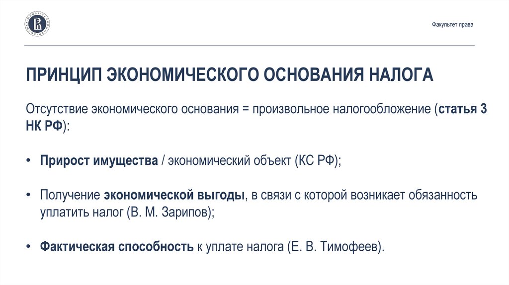 Факультет праваПРИНЦИП ЭКОНОМИЧЕСКОГО ОСНОВАНИЯ НАЛОГА