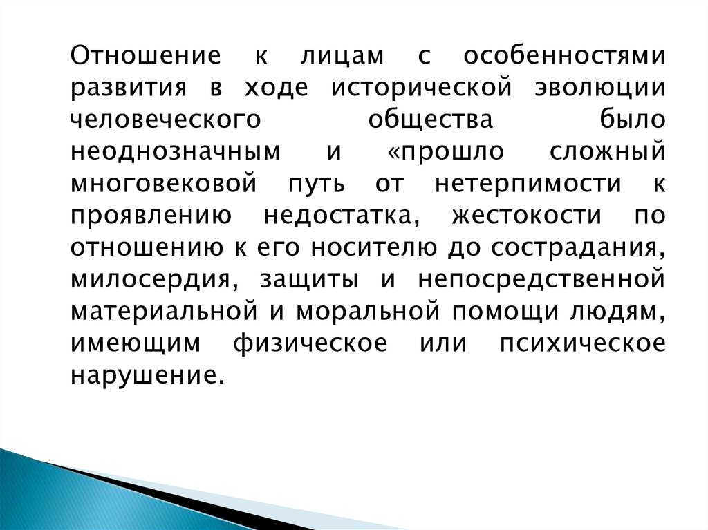 Отношение к лицам с особенностямиразвития в ходе исторической эволюции
