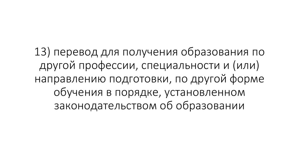 13) перевод для получения образования подругой профессии, специальности и (или)