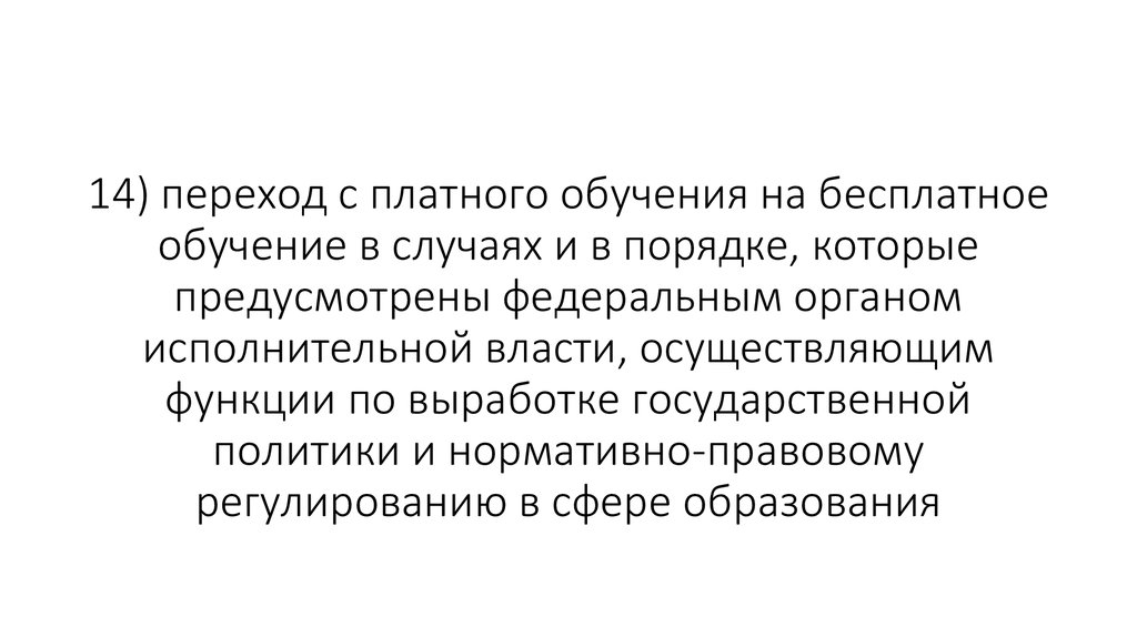 14) переход с платного обучения на бесплатноеобучение в случаях и в порядке, которые