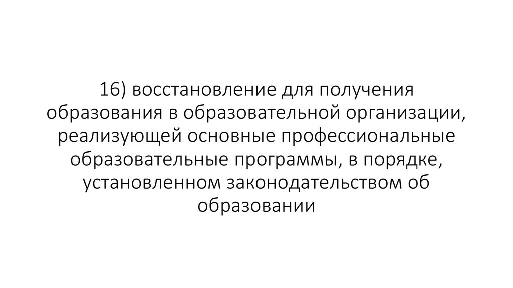 15) перевод в другую образовательнуюорганизацию, реализующую образовательную