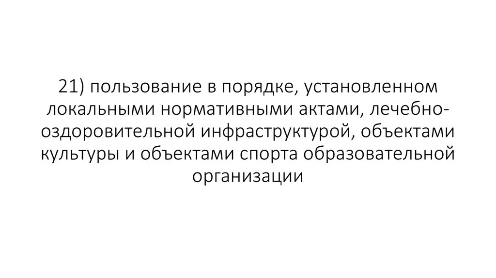 21) пользование в порядке, установленномлокальными нормативными актами, лечебнооздоровительной инфраструктурой, объектами