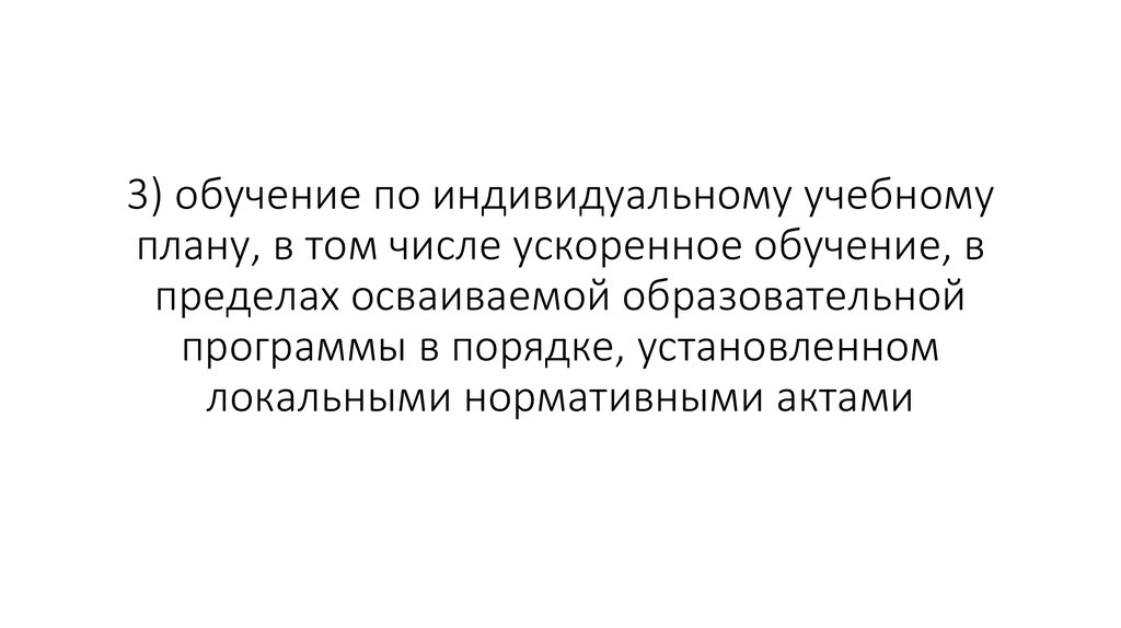 3) обучение по индивидуальному учебномуплану, в том числе ускоренное обучение, в