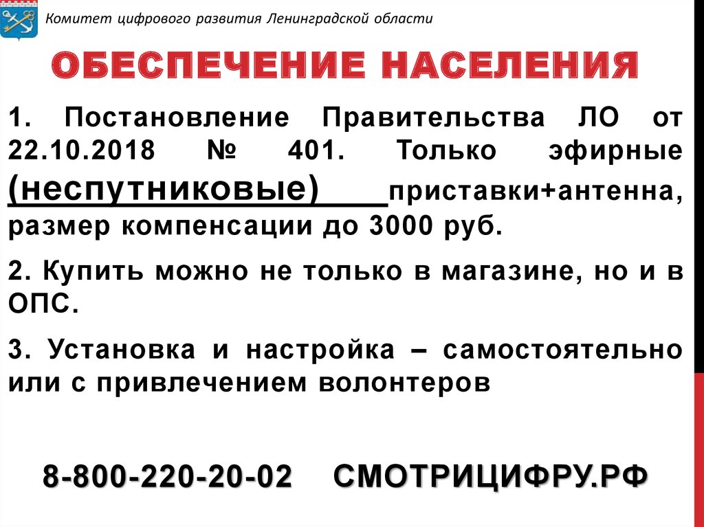 Комитет цифрового развития Ленинградской областиОБЕСПЕЧЕНИЕ НАСЕЛЕНИЯ