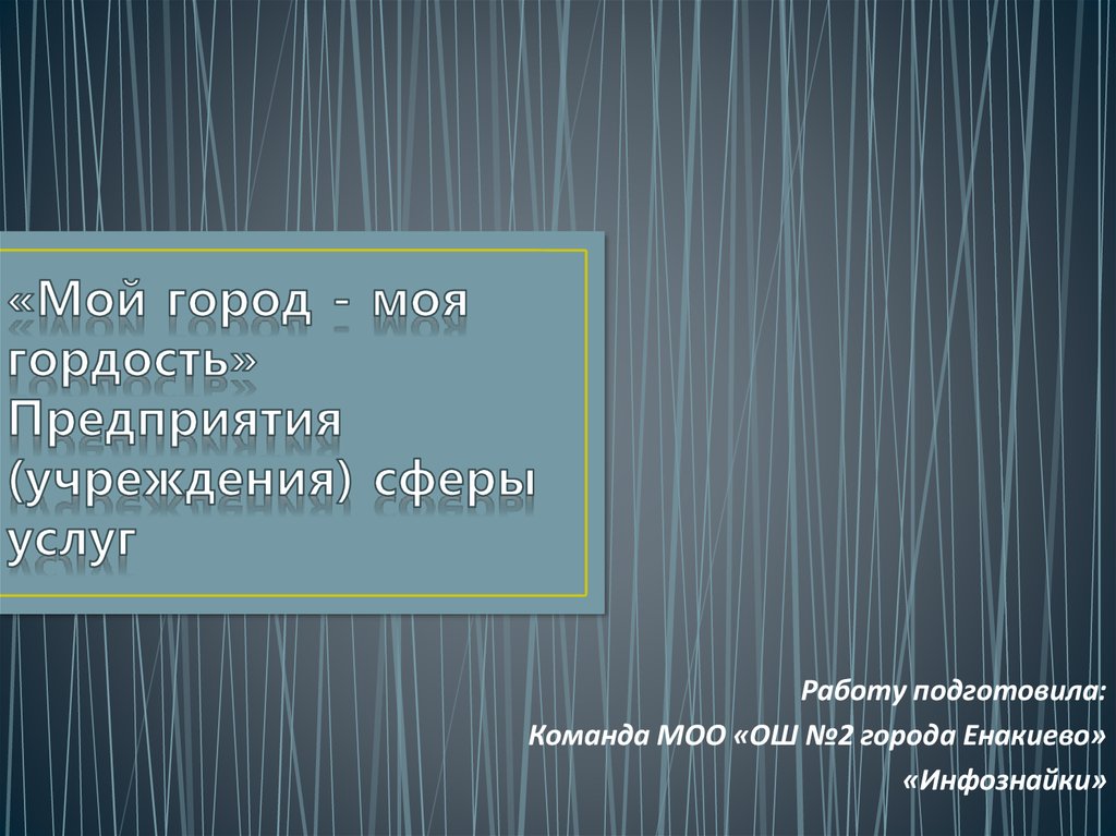 1. «Мой город - моя гордость» Предприятия (учреждения) сферы услуг