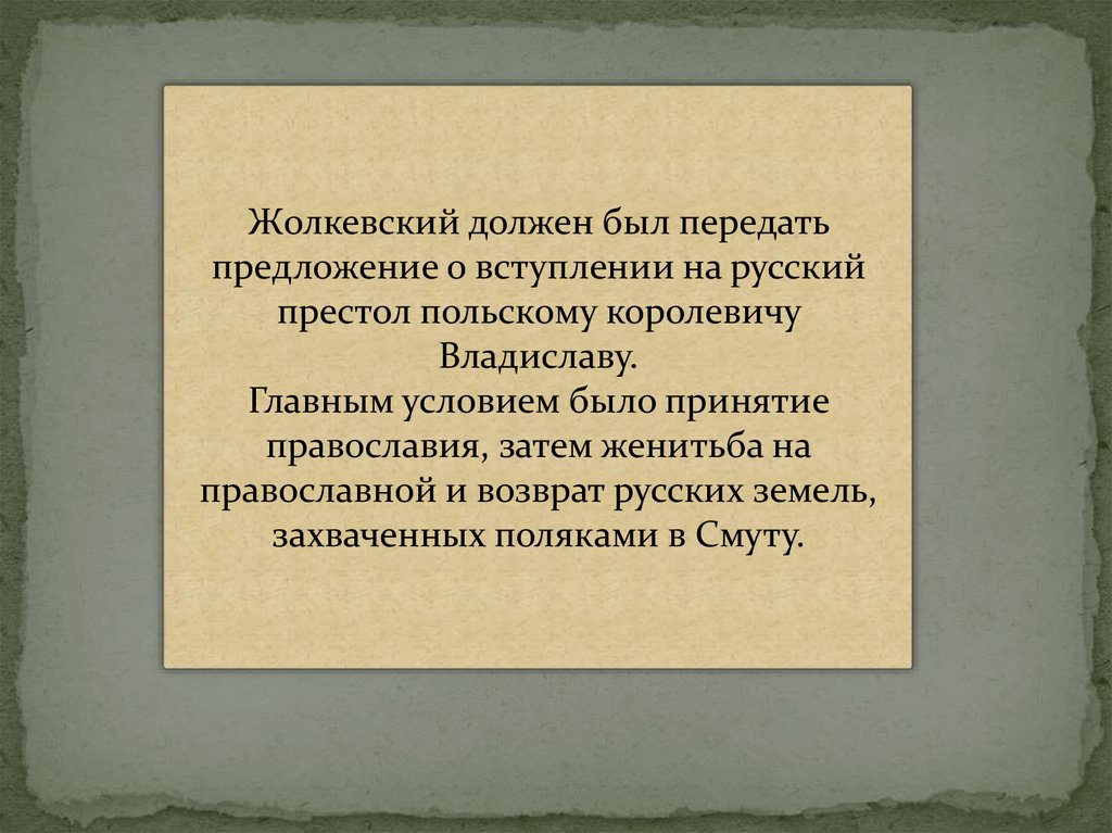 Жолкевский должен был передатьпредложение о вступлении на русский