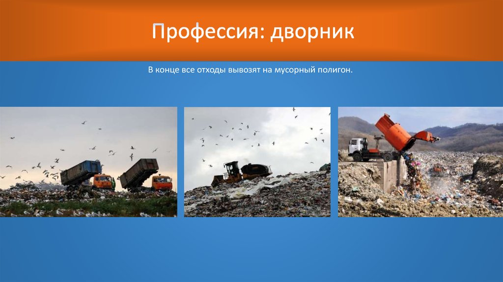 Далее дворник вывозит эти баки наулицу, где их забирает мусорная