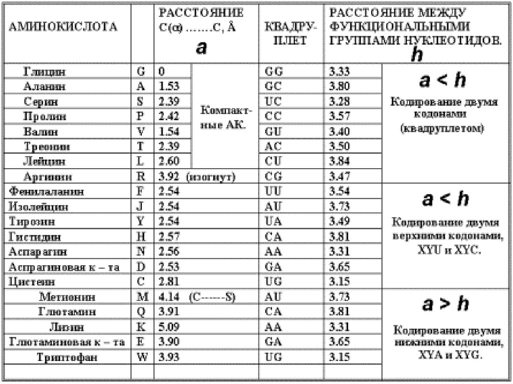 триплетом. Принятые сокращения, соответствующие аминокислотам и кодонам