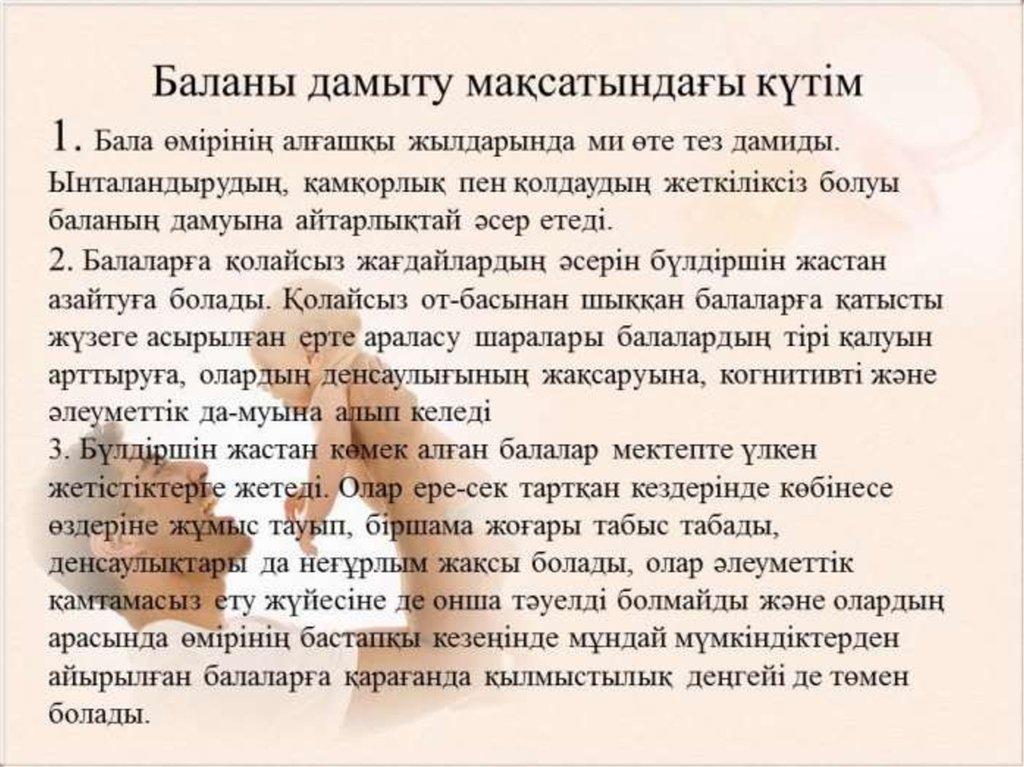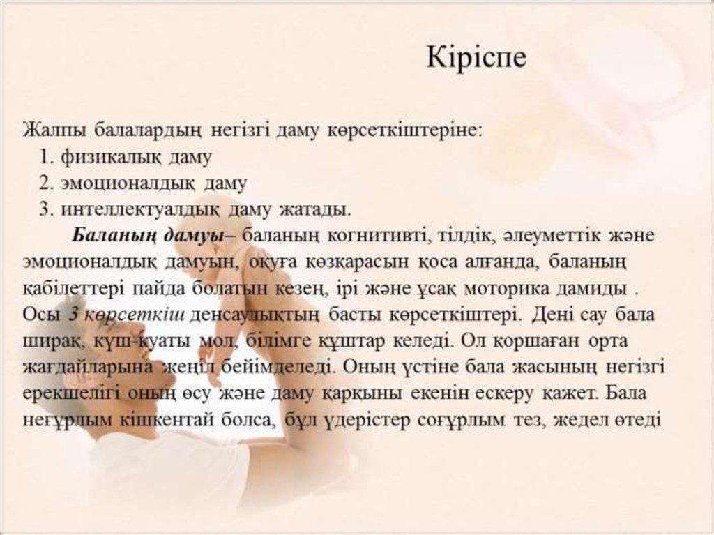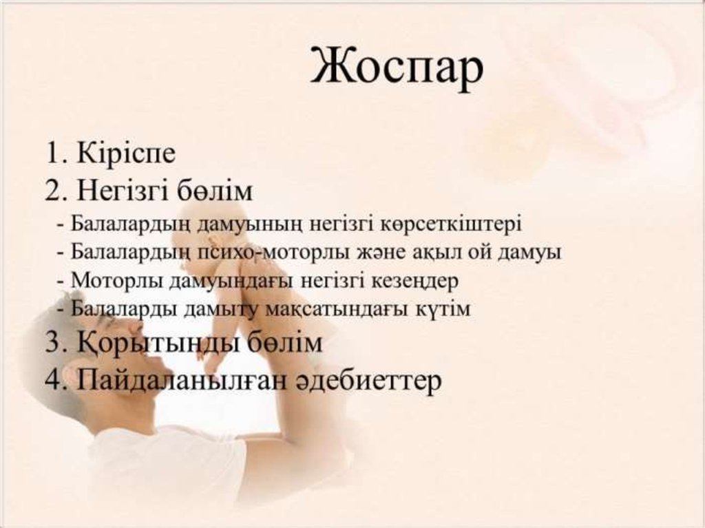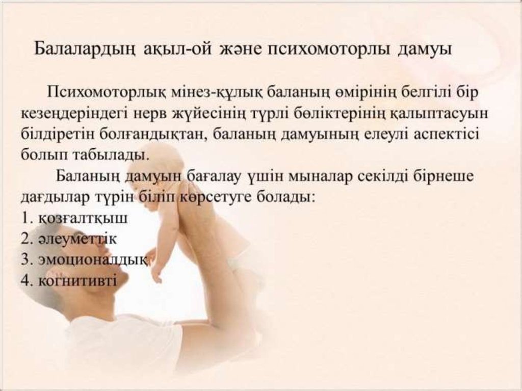 Жасқа дейінгі балардың психо-моторлы даму ерекшеліктері