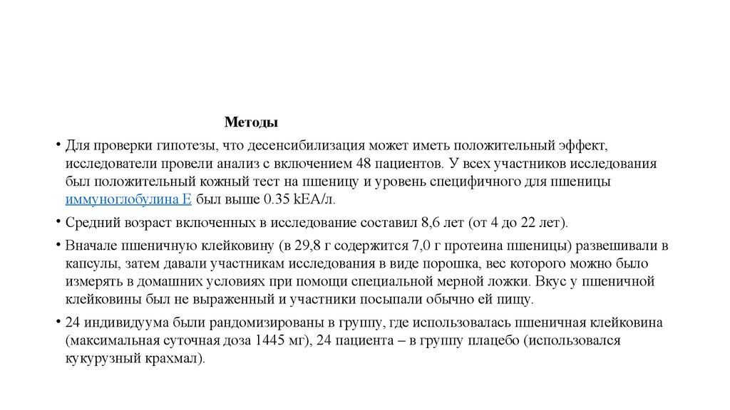 • 24 индивидуума были рандомизированы в группу, где использовалась пшеничная клейковина