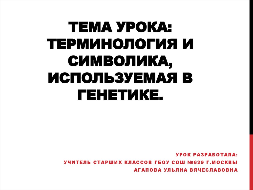 1. Тема урока: Терминология и символика, используемая в генетике.