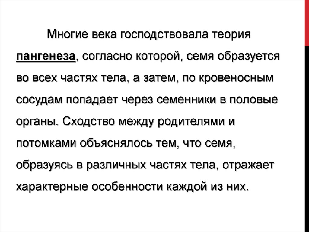 Многие века господствовала теорияпангенеза, согласно которой, семя образуется
