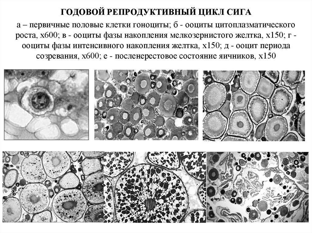 ГОДОВОЙ РЕПРОДУКТИВНЫЙ ЦИКЛ СИГАа – первичные половые клетки гоноциты; б - ооциты цитоплазматического