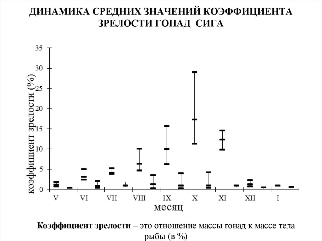 ДИНАМИКА СРЕДНИХ ЗНАЧЕНИЙ КОЭФФИЦИЕНТАЗРЕЛОСТИ ГОНАД СИГА