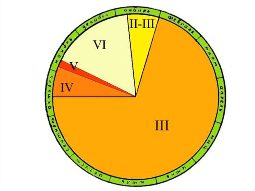 с цитоплазмой. Продолжительность стадии 15-25 дней (с середины октября по