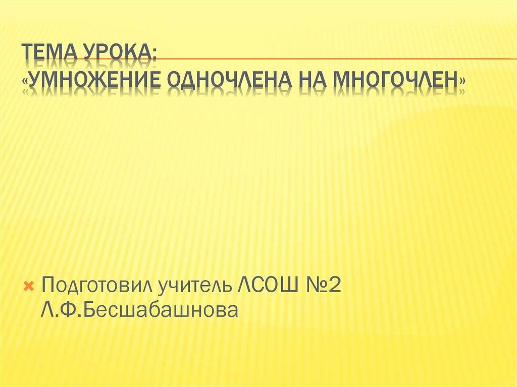 ТЕМА УРОКА:«УМНОЖЕНИЕ ОДНОЧЛЕНА НА МНОГОЧЛЕН»